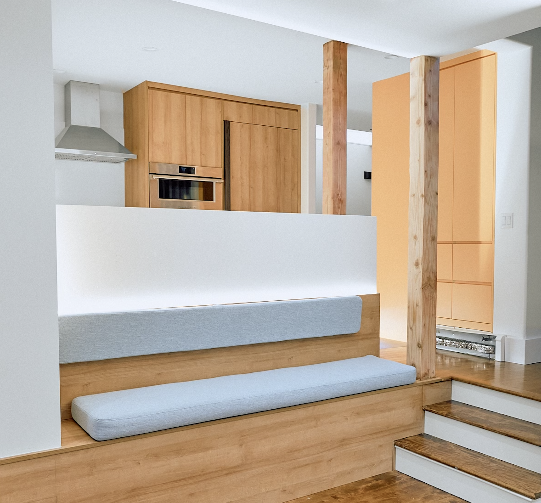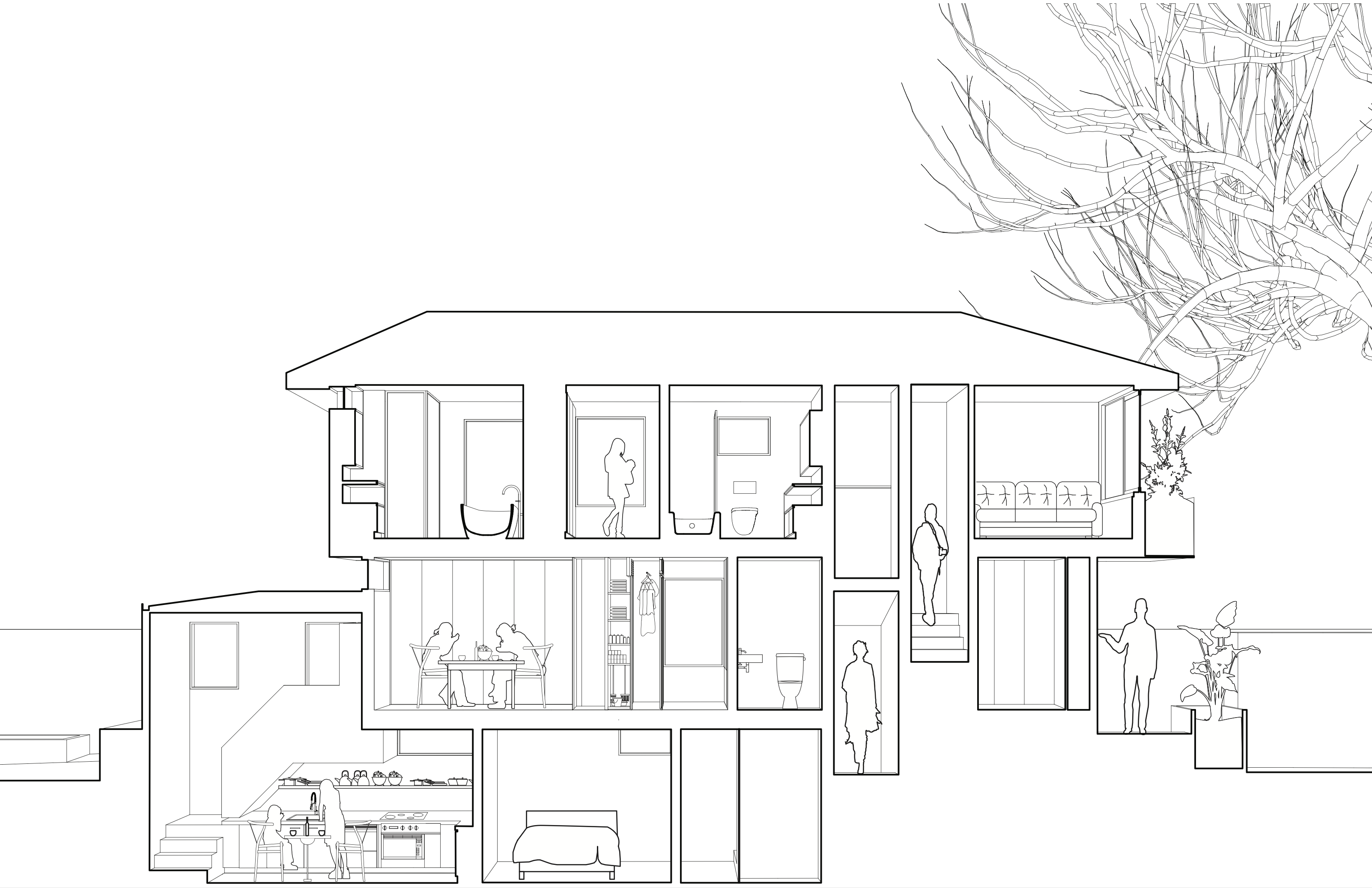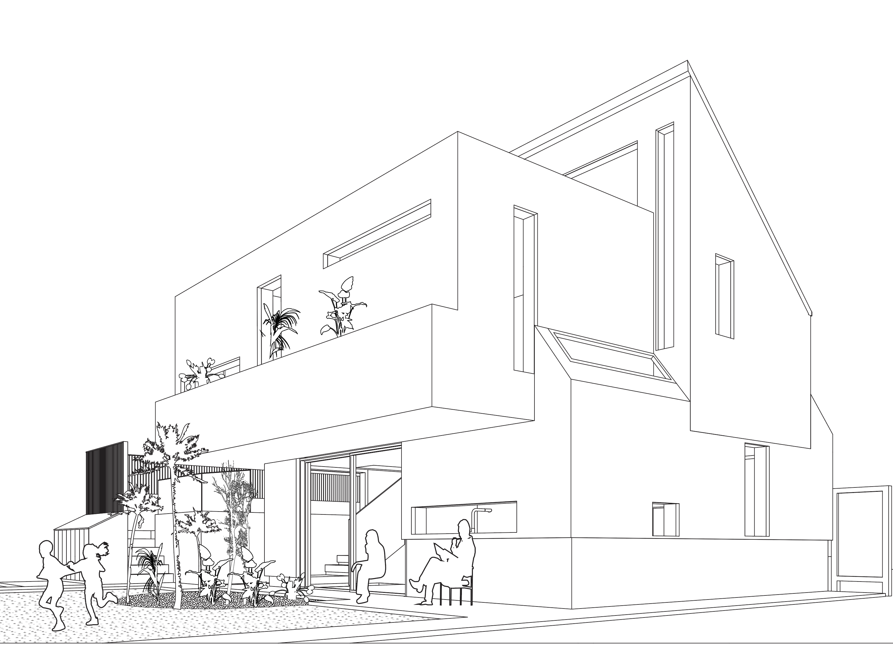 The brief initially dictated a combination of an art studio and apartment. Commonly refered to as a lane-way house in Canada, this auxilary lot underwent policy change allowing for a more nuanced use of ones laneway property. As seen below, the design celebrates the program allowing for the multi generational occupants both in the existing main house and laneway to live and work with space for private semi - private and semi - public moments required in work and life.