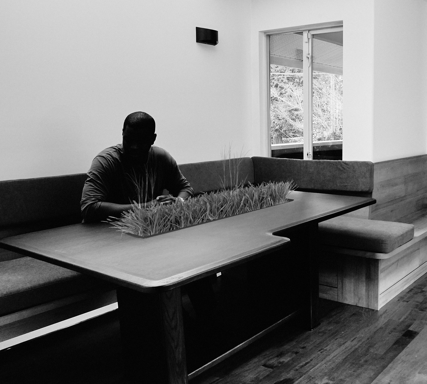 A suspended column of modular planters, each holding a small ecology, arranged in a vertical field. The installation treats plants as spatial material rather than ornament, producing a lightweight structure that oscillates between sculpture, partition and micro-landscape. Shadows double the piece on the wall, marking growth and temporal change themes central to our ongoing interest in territoriality, living systems and quiet spatial interventions.